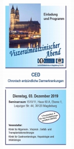 Die Behandlung von Patienten mit chronisch entzünd-lichen Darmerkrankungen stellt einen Schwerpunkt unseres Klinikums dar, und wir sind sehr glücklich, Sie auch zu diesem Thema zu unserem mittlerweile zur Tradition gewordenen viszeralmedizinischen Abend einladen zu dürfen.